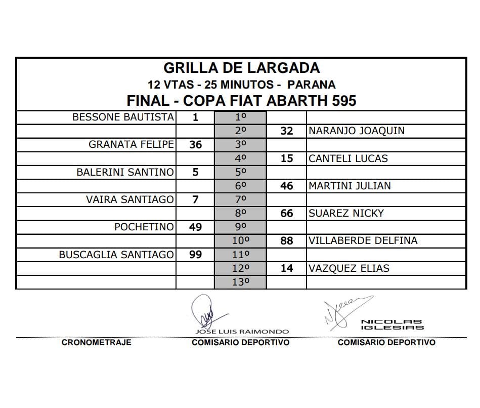 Lo que resta para finalizar con el cronograma de esta segunda fecha es la carrera final que se disputará bien temprano en la mañana del domingo desde las 9 hs con 12 vueltas o 25 minutos como máximo al trazado del Club Volantes Entrerrianos.
