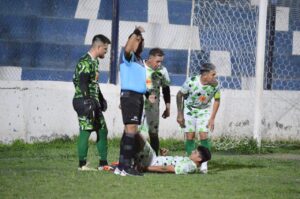 En ese momento el arquero del equipo zondino acusó haber recibido un proyectil que impactó supuestamante en su cabeza. El árbitro Alberto Riveros esperó la ambulancia para que lo atendieran y la demora hizo que el juez decidió la suspensión .