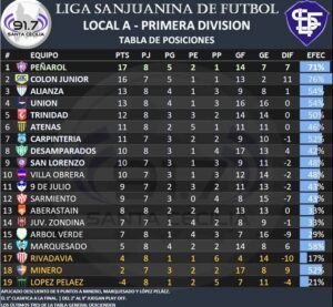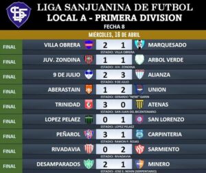 La octava fecha del Torneo Apertura de la Liga Sanjuanina de Fútbol dejó emociones fuertes en cada rincón de la provincia. Con nueve encuentros disputados y Colón Junior libre, Peñarol sacó provecho de su localía para imponerse con autoridad ante Carpintería y quedar como único líder de la competencia.