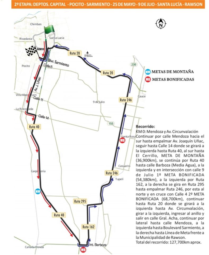 La primera etapa se desarrollará el jueves 11 de enero desde las 16hs, partiendo desde la plaza de Santa Lucía, lugar que no visitaba el ciclismo sanjuanino desde hace varios años. La salida real será en la YPF de Ruta 20, para luego recorrer 9 de Julio y Caucete hasta llegar a la Difunta Correa. Una vez recorrido ese trazado, los pedaleros se dirigirán hacia la línea de meta ubicada en calle Maurín, departamento Pocito.