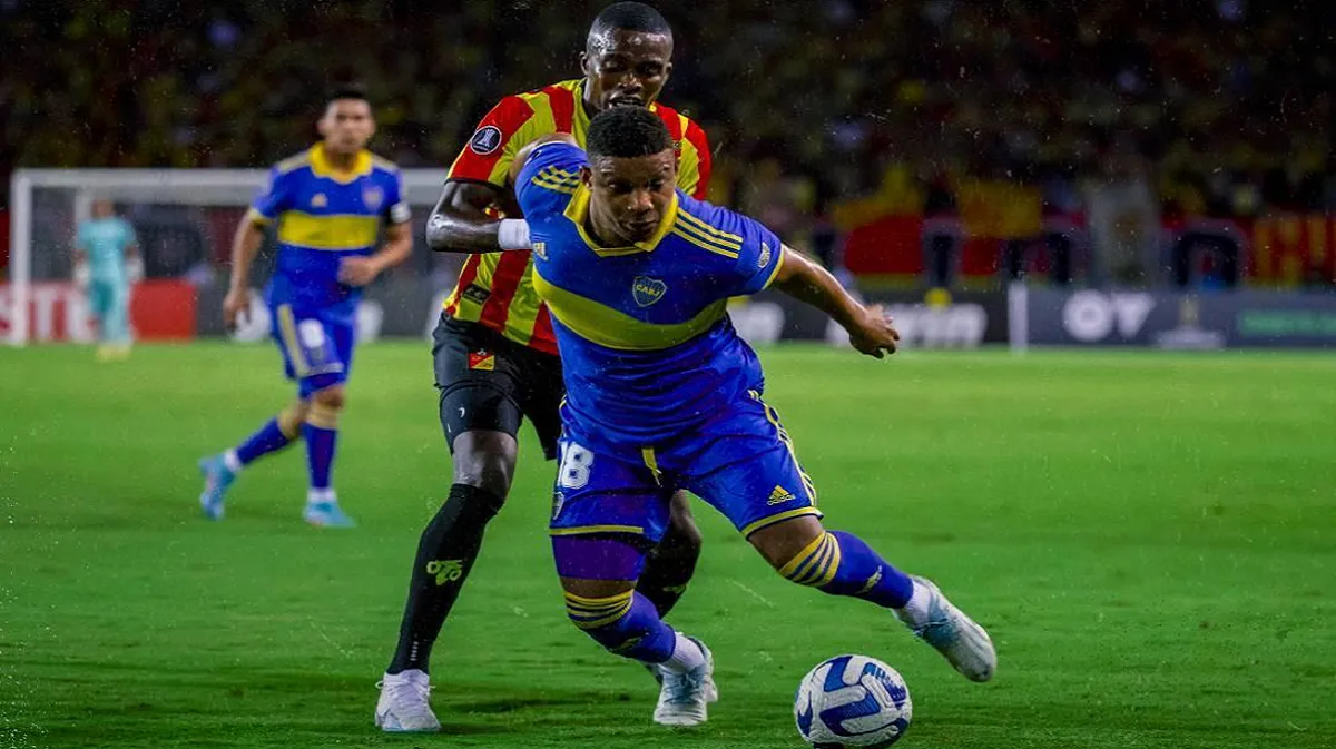 En la primera media hora Villa, otra vez el jugador más peligroso del “xeneize” en ese tiempo, se movió por la punta derecha para evitar las proyecciones de Fory, que era una de las formulas ofensivas del equipo colombiano.