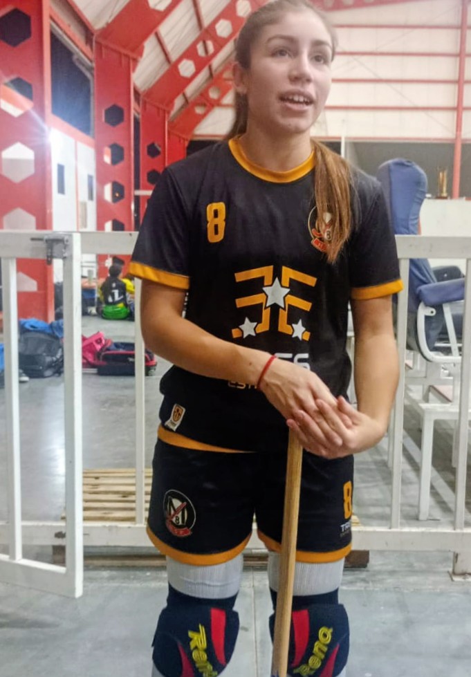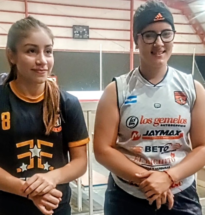 Muy gentilmente pudimos charlar, antes del entrenamiento, con Maribel Galdeano y Valentina Verón, dos de las más experimentadas jugadoras naranjas, más allá de su corta edad.