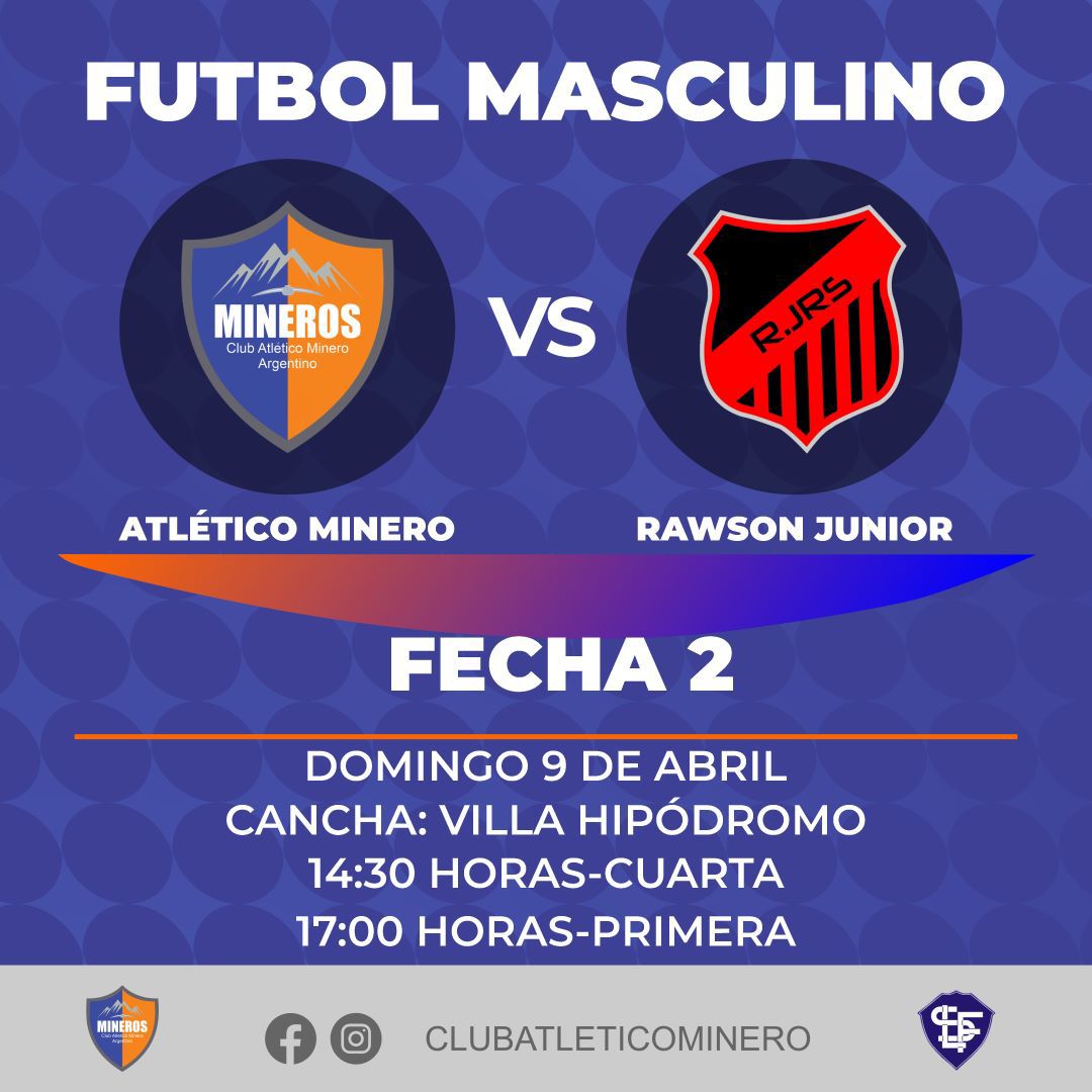 Finalmente, en el marco de la 2° fecha del torneo de la B, los muchachos de Minero recibirán a Rawson Junior en la cancha de la Villa Hipódromo. Recordando que en el debut, fue triunfo frente a Juventud Ullunera. El partido comienza a las 14:30 en cuarta división, mientras que en primera, el partido arrancará a las 17 horas.