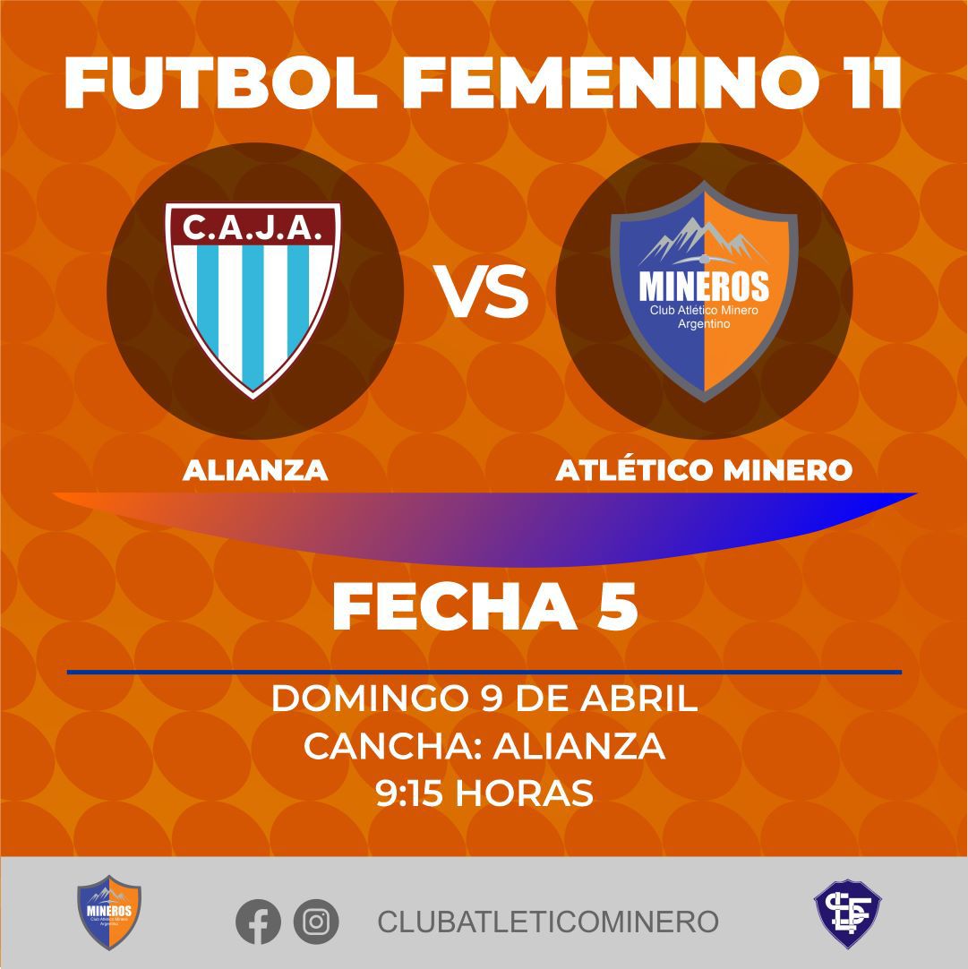 En el fútbol 11 femenino, el domingo temprano (9:15 horas), las mineras enfrentarán en condición de visitante, a las Lechuzas de Atlético Alianza. El partido se jugará en el estadio El Centenario de Santa Lucía y forma parte de la 5° fecha del campeonato.