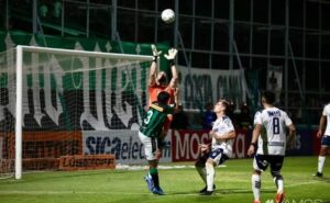 En el amanecer del partido, el Verdinegro tuvo una clara. Alejandro Molina desbordó por la derecha, tiró un centro atrás y encontró a Dante Álvarez, quien remató y dio en el travesaño.