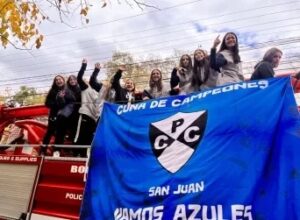 Mucho ruido y gran alegría envolvieron al recibimiento de las bicampeonas, en la fría mañana dominguera, donde las bicampeonas pasearon el trofeo.