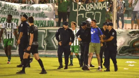Cabe recordar que sobre el final del primer tiempo, cuando estaban 0-0, se produjo un tumulto entre los futbolistas de Desamparados y Colón tras una falta, nada distinto a lo que puede pasar en cualquier partido. Pero, las cosas comenzaron a tomar temperatura y fue en ese instante en que un hincha víbora ingresó al campo de juego y empujó a un jugador merengue.