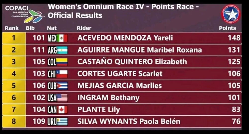 Aguirre mostró toda su jerarquía y resistencia a lo largo de las cuatro disciplinas que componen el Omnium, sosteniendo un rendimiento sólido y competitivo frente a las mejores exponentes del continente. Con inteligencia táctica y fortaleza física, aseguró el segundo escalón del podio y volvió a confirmar su lugar entre la élite panamericana.