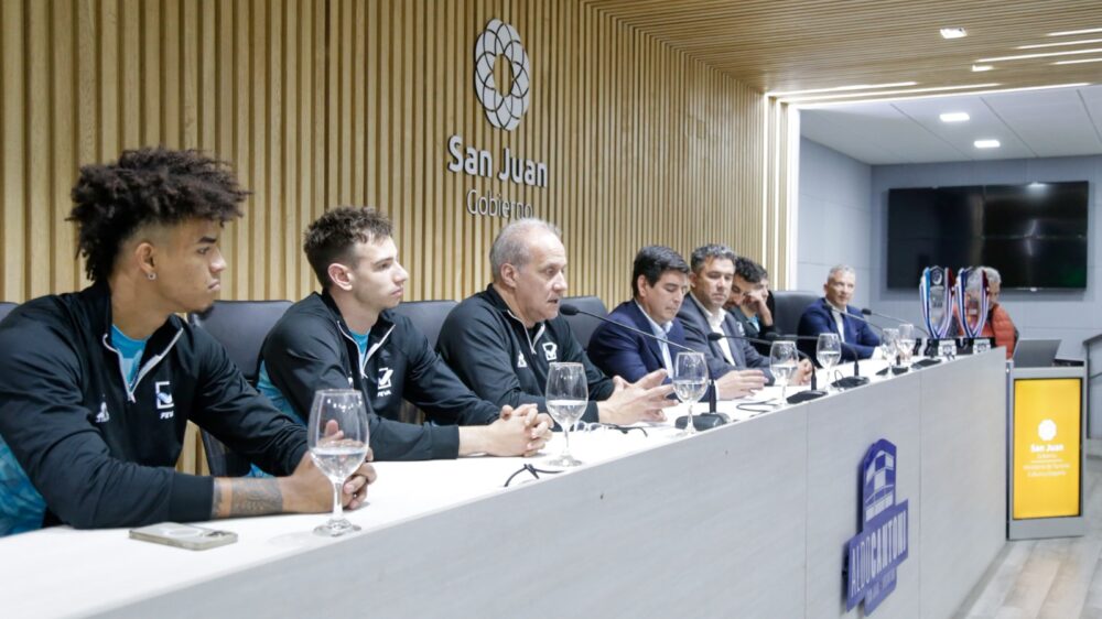 La presentación, que se realizó en la sala de prensa del Estadio Cantoni, fue encabezada por el ministro de Turismo, Cultura y Deporte, Guido Romero; el secretario de Deporte, Pablo Tabachnik; el presidente de la Agencia Deportes San Juan, Pablo Aubone y los integrantes de la selección argentina de vóley, el director técnico Marcelo Méndez y los jugadores Agustín Loser, Bruno Lima, Matías Sánchez y Manuel Armoa Morel.