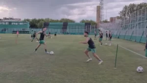 Desde el camarín, el plantel se trasladó al gimnasio del club, donde alguna vez existió la cancha de pelota paleta, y realizó algunos trabajos con pesas con el preparador físico.