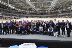 A continuación los dirigentes que fueron homenajeados en la jornada inaugural del velódromo Vicente Chancay: