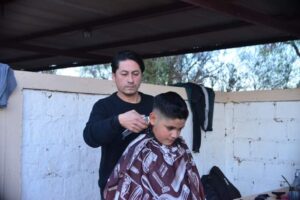 El estilista Lucas Centeno fue quien montó su peluquería allí para cortar el pelo a los chicos y darle el mejor cierre a una jornada solidaria que tuvo a los futbolistas de Rivadavia como los impulsores y que los vecinos del lugar agradecieron.