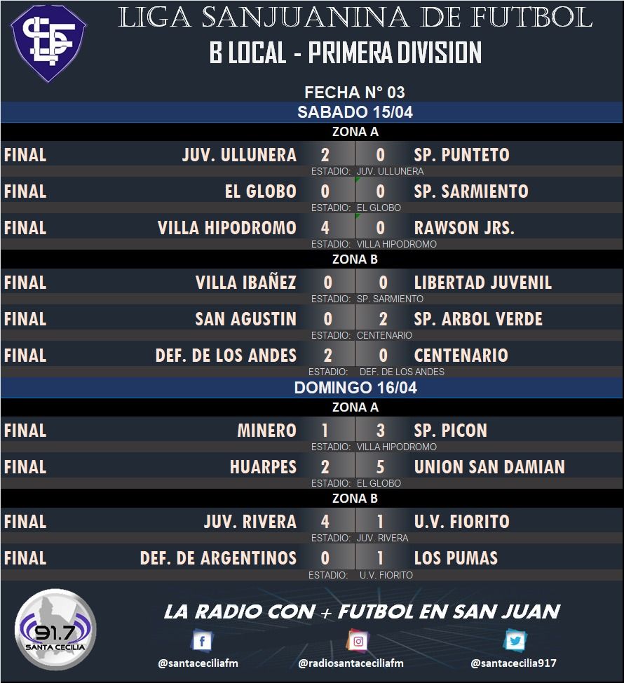 La tercera fecha del fútbol de ascenso de San Juan llegó a su fin este domingo. Hubo partidos realmente interesantes donde había mucho en juego.