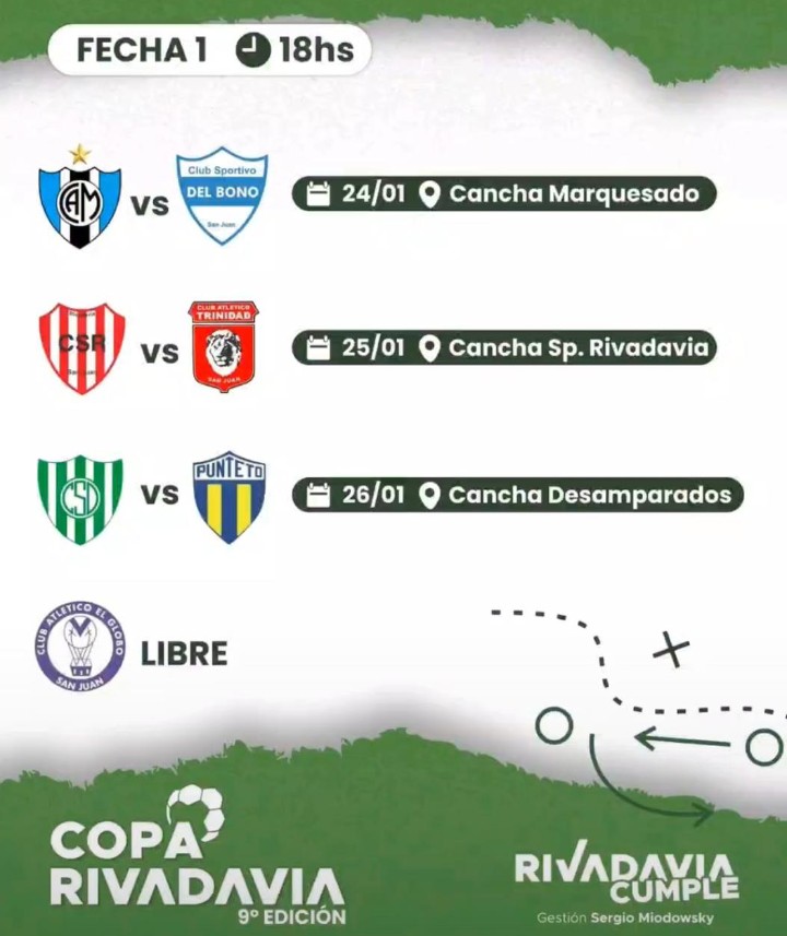 El Grupo A estará integrado por los clubes Marquesado, Del Bono y El Globo, mientras que en el Grupo B estarán Rivadavia, Sportivo Desamparados, Punteto y Trinidad.